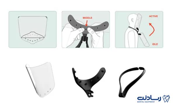 • طراحی آنتروپومتریک براکت و ابعاد بزرگتر شیلد به نسبت شیلدهای معمولی، قوس شیلد را به نحوی معین میکند که پوشش بیشتر و سراسری برای صورت ایجاد کند.